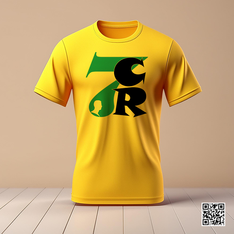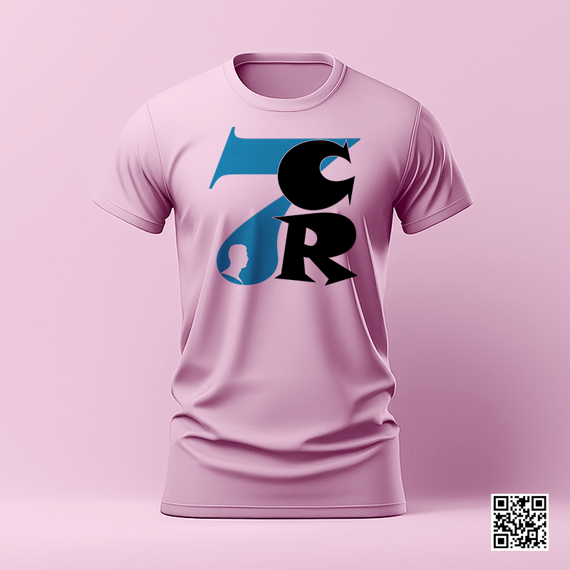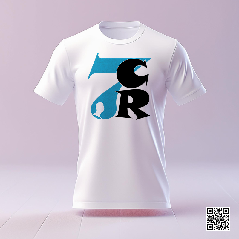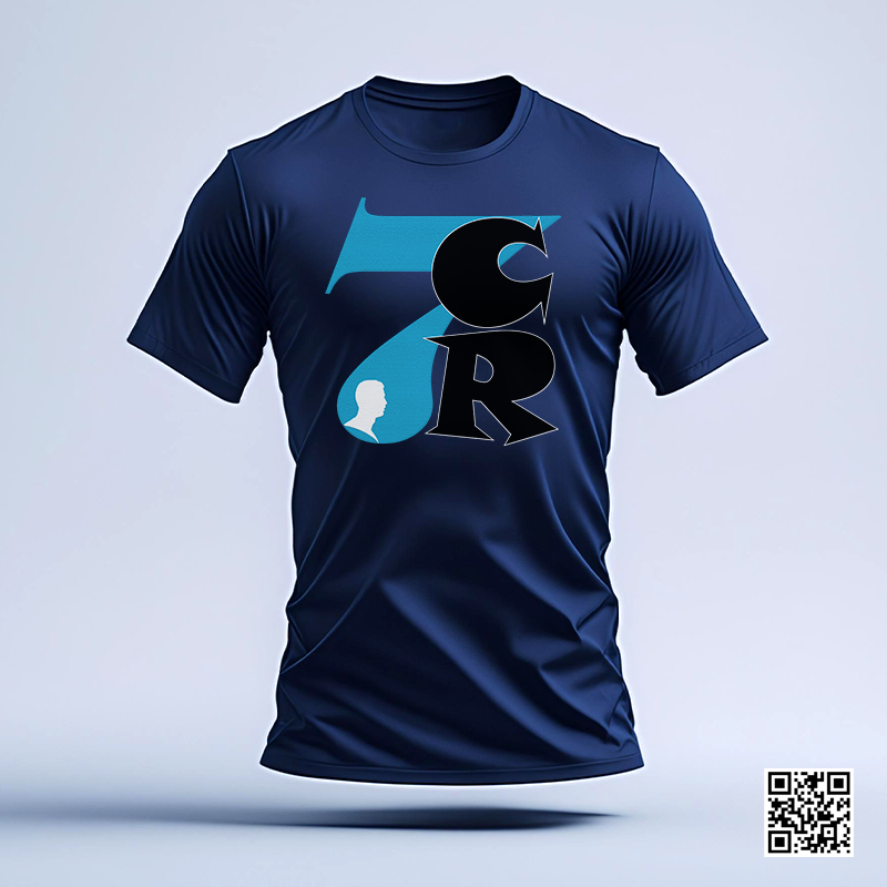 This striking CR7-inspired t-shirt design blends bold typography with modern minimalism. The large “7” backdrop paired with the sleek “CR” letters