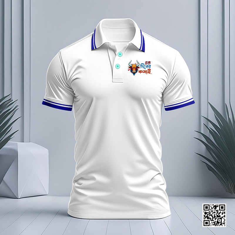 Make a bold statement this Eid with Sapakhana’s exclusive “Ek Diner Kosai” premium polo T-shirt. Designed with a fierce bull graphic and striking Bangla text, this shirt symbolizes courage and culture. Made from high-quality Algodon Mesh Cotton (60% Cotton, 30% Polyester, 10% Spandex) for comfort and durability. Available in white, light gray, navy blue, and sky blue. A perfect fusion of tradition, style, and bold attitude for men and women.