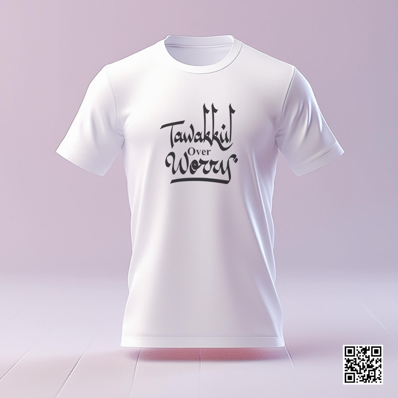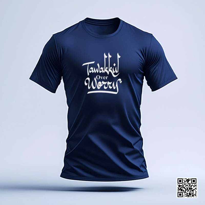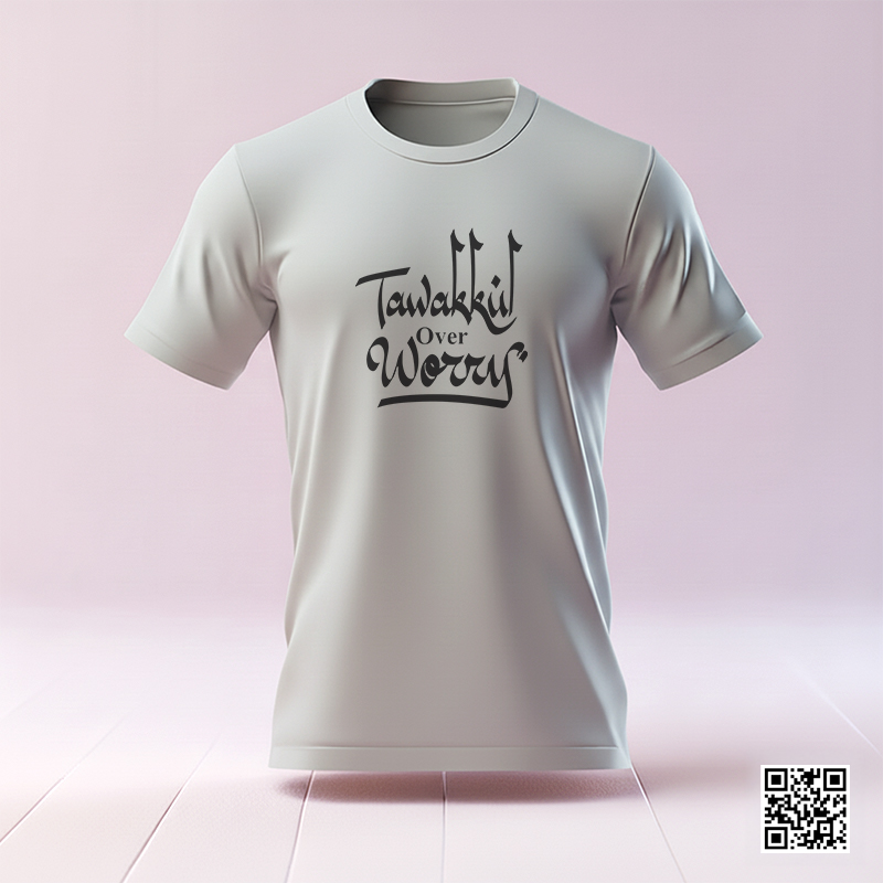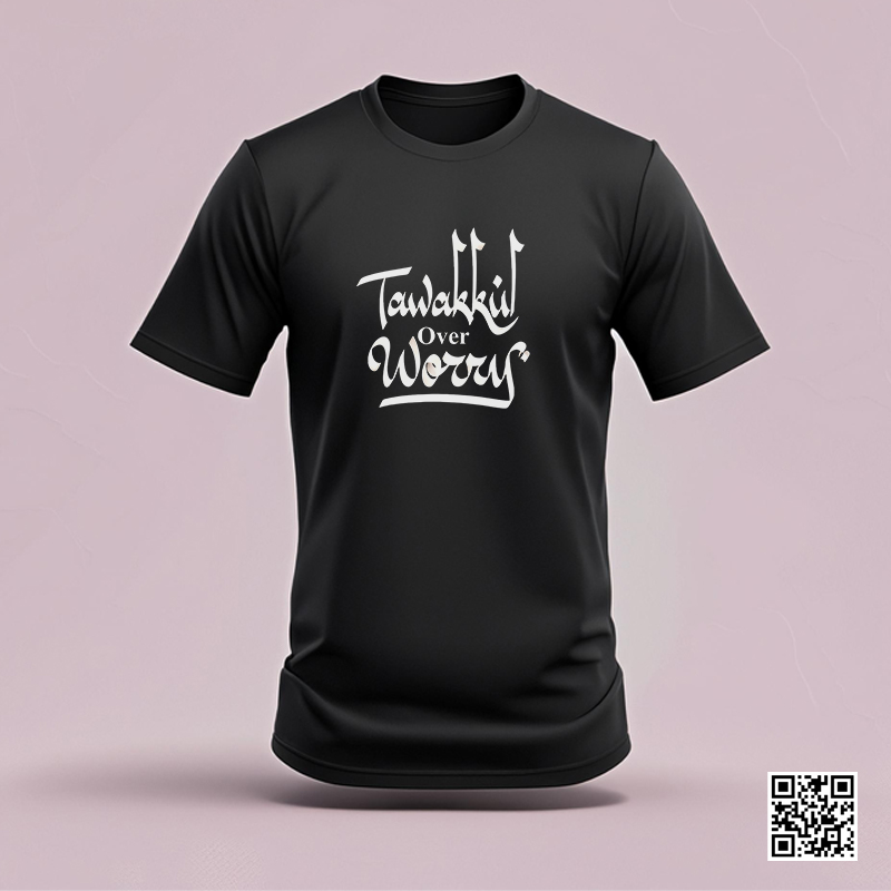Tawakkul Over Worry” is a powerful Islamic reminder to trust Allah over fear and anxiety. This clean, minimal typography design represents faith, patience, and spiritual strength—perfect for Muslims who love meaningful, modern Islamic apparel. Ideal for everyday wear or thoughtful gifts.